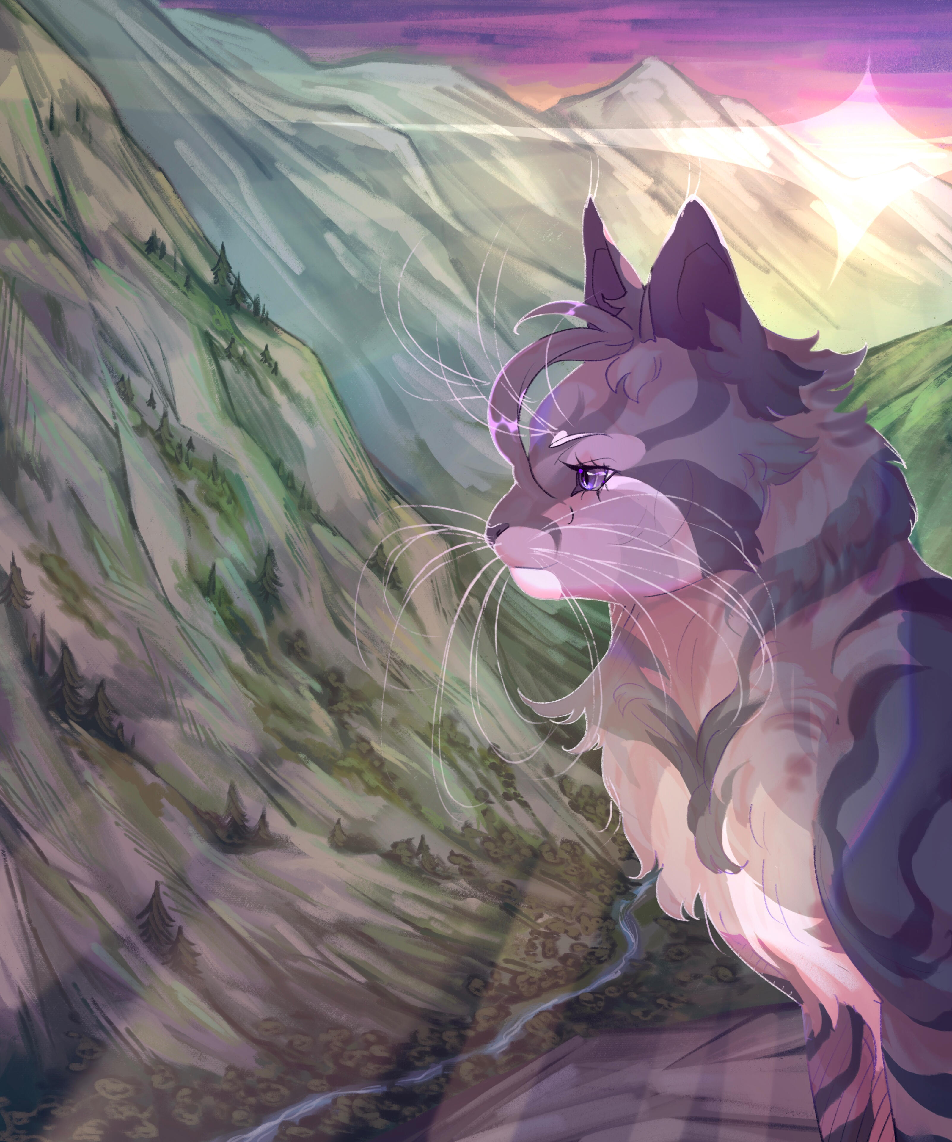 | poster commission | $75-$200 depending on complexity and # of characters | a poster commission is a commission of character(s) of your choosing in a scene that resembles a poster! usually very over-the-top with strong lighting and symbolic imagery. |