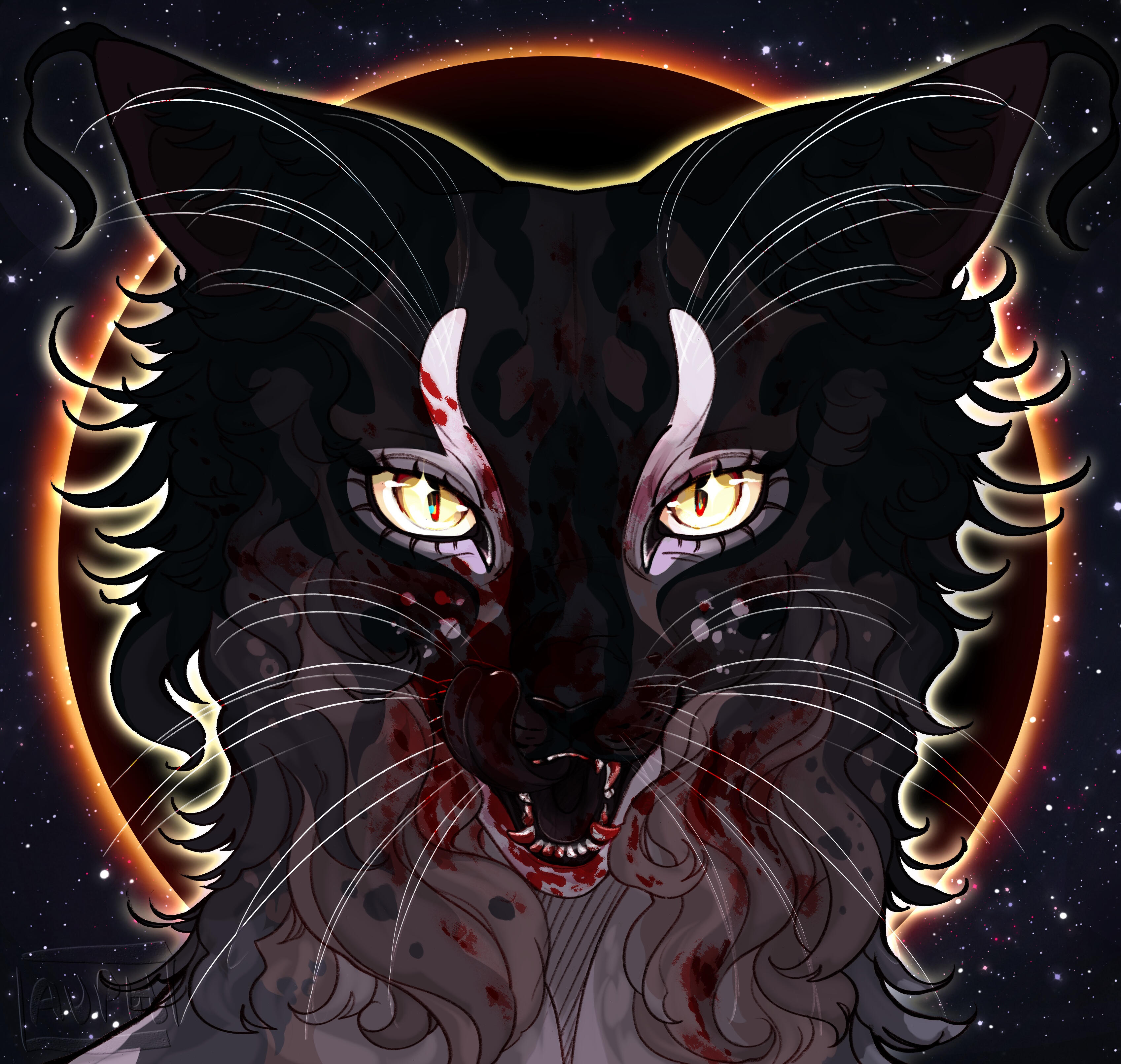 | symmetrical headshot | $30 (will be slightly more for very complex characters) | a symmetrical headshot is a mirrored image headshot of your character, with any expression and accessories that you'd like! it comes with 3 layers of shading and is very detailed! |